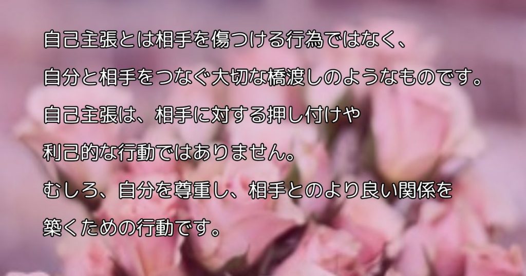 自己主張は、相手に対する押し付けや利己的な行動ではありません。