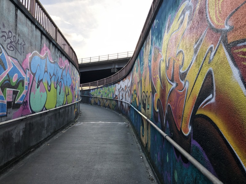 地下道付近の壁は落書きされていることが多いです。