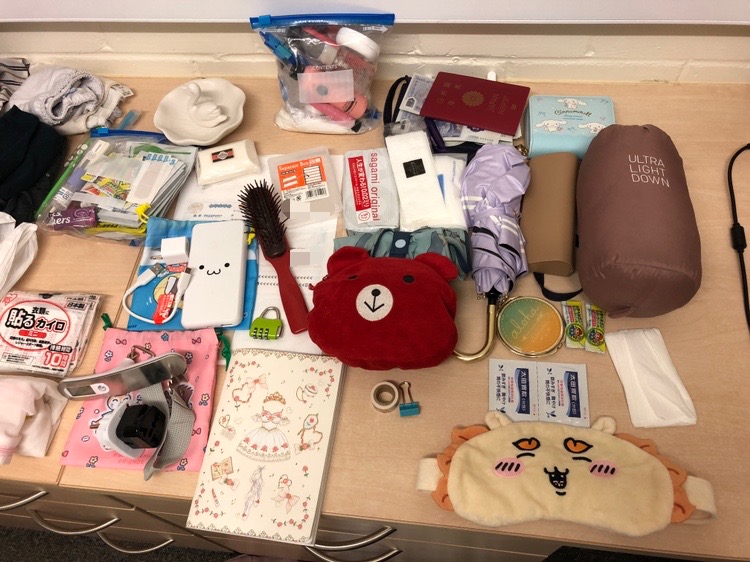 荷物はこんな感じ。両替をせずに行くという賭けに出てみましたが、無事成功!
