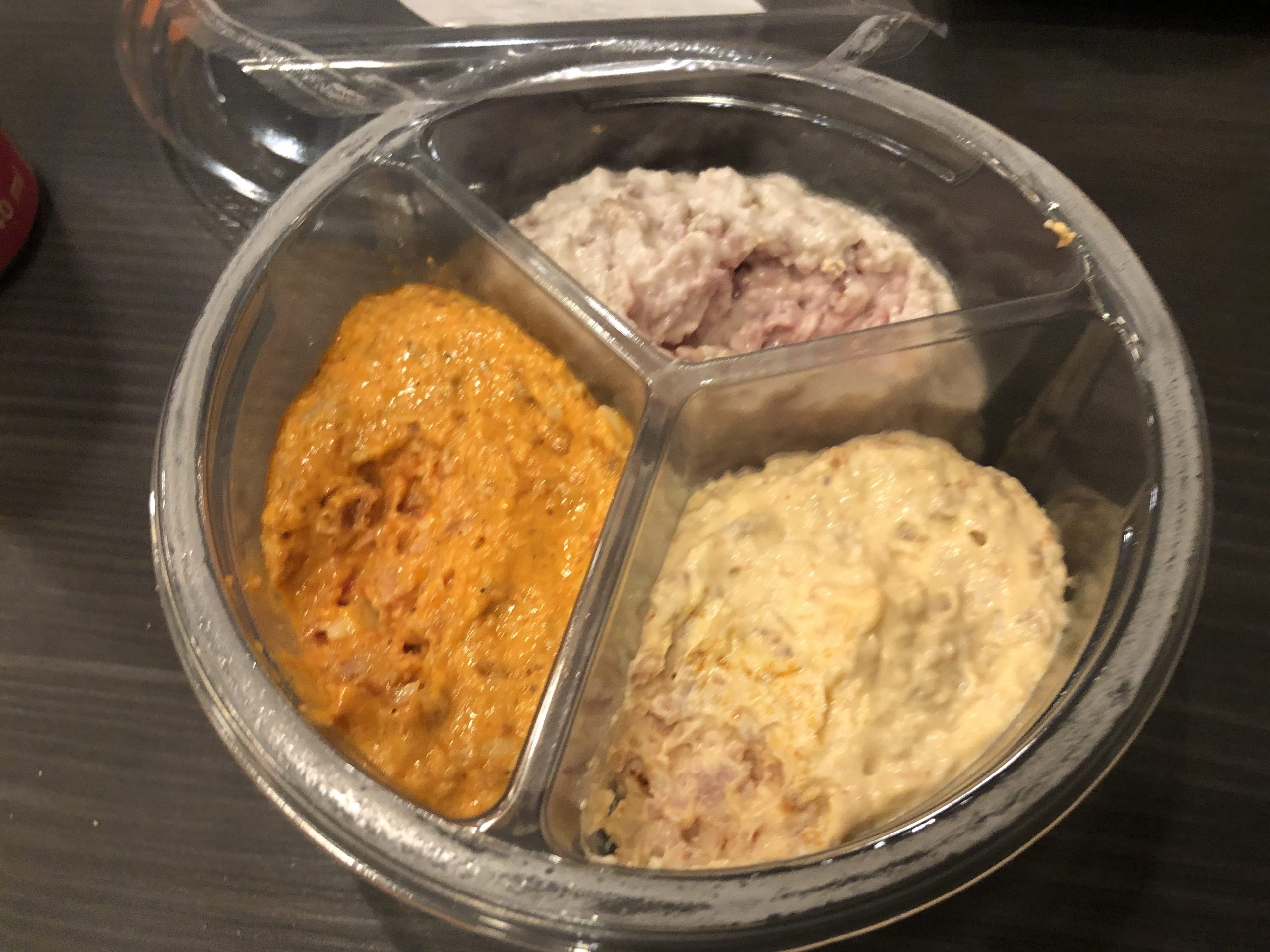 晩御飯は、ホテル近くのスーパーで買った、スープとディップするペースト的なものと、白いパンとメントスジュースでした。