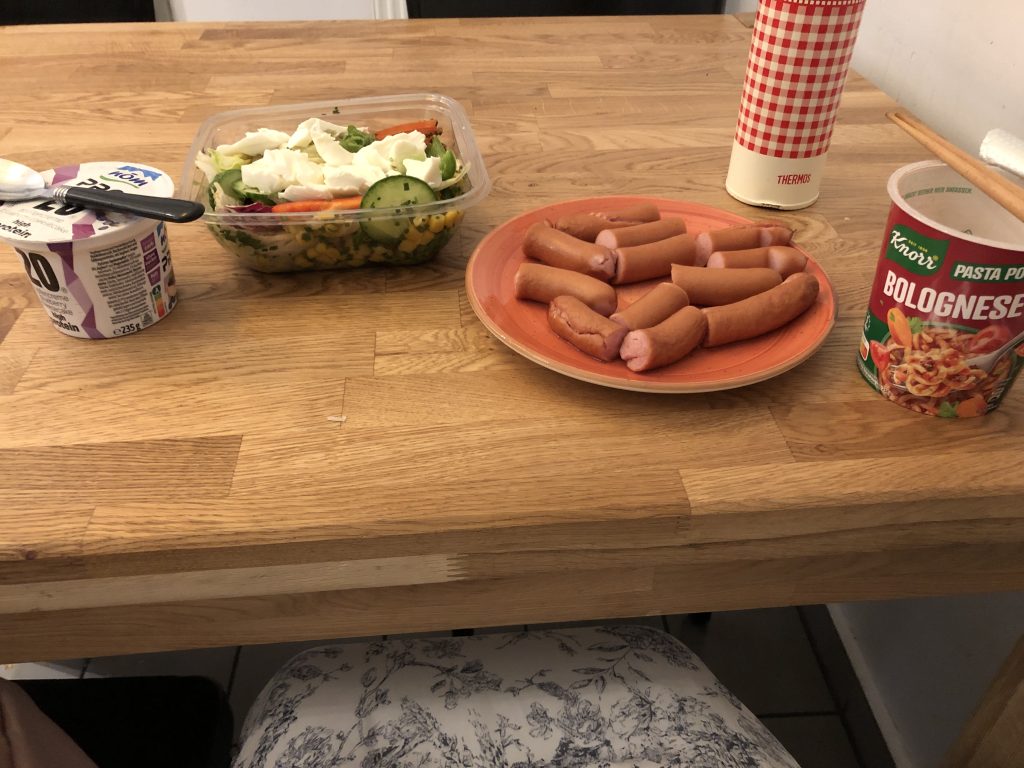 ホステルに泊まったのでゲストキッチンがあり、ウインナーをレンジで温めたり、カップ麺を作ることができました。