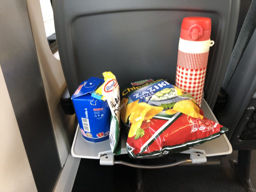 道中、前日にミュンヘンのスーパーで買ったZAZIKI味のポテチと、初日のプラハのスーパーで買っていたプレッツェル、ハリボーショップで詰めたハリボーグミをいただきました。